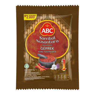 ABC Sambal Geprek 10 x 18 g adalah sambal siap saji yang dapat dinikmati dan dikonsumsi kapan saja. Dibuat dari cabai pilihan berkualitas yang diolah menggunakan teknologi tinggi sehingga menghasilkan sambal dengan kualitas segar. Memberikan citra rasa ekstra pedas asal Yogyakarta yang khas dan berkualitas. Dapat dinikmati sebagai bumbu tambahan pada setiap makanan khas Nusantara, dan membuat setiap rasa makanan semakin menggugah selera. Dikemas dalam sachet berukuran 18 g, sehingga cocok dan mudah dibawa saat berpergian ke luar kota atau keluar negeri. Tersedia dalam isi 10 sachet @ 18 g.