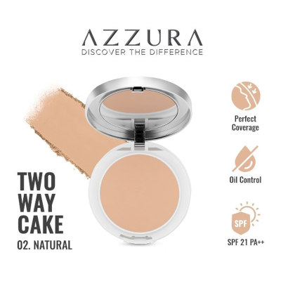 AZZURA Two Way Cake Matte Finish 02 Natural 12 g adalah produk kecantikan alas riasan wajah. Diformulasikan secara khusus dengan kandungan amazonia clay di dalamnya sebagai alas wajah berbentuk bedak padat yang mampu menyerap minyak dan sebum pada wajah, sehingga memberikan tampilan akhir matte pada wajah. Mampu menutup dan menyamarkan tampilan pori dan noda kehitaman pada wajah sehingga wajah memiliki tampilan yang lebih halus. Terdapat kandungan SPF 21 PA ++ yang mampu melindungi kulit wajah dari paparan sinar matahari. Memiliki tekstur yang ringan sehingga nyaman untuk digunakan sepanjang hari dan untuk berbagai acara. Hadir dengan warna natural yang cocok digunakan untuk warna kulit medium. Dikemas menggunakan packaging yang compact dengan cermin dan sponge didalamnya, sehingga sangat praktis untuk digunakan dibawa berpergian.