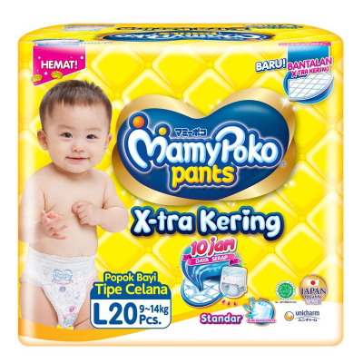 Popok celana persembahan MamyPoko yang hadir untuk bayi dengan berat badan 9 hingga 14 kg. Popok ini dilengkapi penahan ganda, sehingga dapat mencegah bocor samping. Memiliki pori-pori untuk sirkulasi udara, popok ini nyaman digunakan untuk si kecil. Daya serapnya tinggi, sehingga dapat digunakan lebih lama.