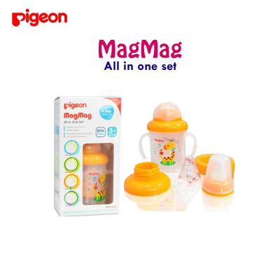 Pigeon Mag Mag All in One Set Training Cup merupakan cangkir minum dengan pegangan pada kedua sisi yang memudahkan bayi memengan gelas. Dengan adanya pegangan ini, si kecil dapat belajar minum dengan sendirinya. erdiri atas Step 1 - 4 dalam satu paket. Dibuat dari bahan berkualitas yang aman untuk digunakan Didesain ergonomis dengan nipple lembut, elastis, dan lentur