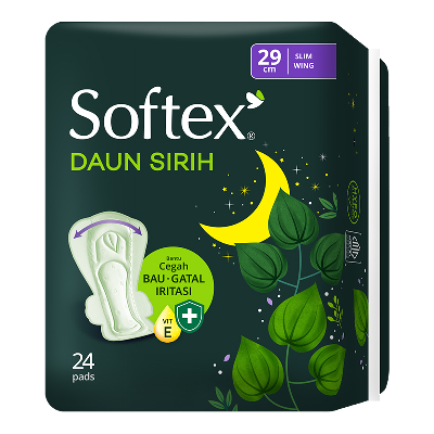 Softex Daun Sirih Pembalut Heavy Flow Wing 29 cm 24 pcs merupakan salah satu varian pembalut dari Softex yang dirancang lebih panjang dengan permukaan bagian belakang lebih lebar. Pembalut Softex Daun Sirih hadir dalam desain panjang berukuran 29 cm dengan sayap yang melekat memberi rasa nyaman dan aman saat beraktivitas. Pembalut tanpa gel dan parfume ini dibuat dari bahan dengan kelembutan ekstra dan lapisan permukaan bersirkulasi udara yang menjaga Anda tetap kering dan bebas lembab sehingga Anda dapat beraktivitas dengan nyaman dan percaya diri sepanjang hari. Ekstrak daun sirih dalam pembalut yang bisa digunakan pada siang dan malam ini memberikan anti septik alami yang mencegah bakteri penyebab bau dan gatal. Tersedia dalam kemasan isi 24 pads.