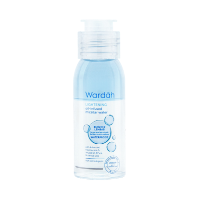 Wardah Lightening Oil Infused Micellar Water 50 ml adalah micellar water yang mengandung 4 Pure Botanical Oils yang terdiri dari Macadamia Oil, Jojoba Oil, Avocado Oil, dan Soybean Oil yang membantu menutrisi kulit. Kandungan Advanced Niacinamide dan vitamin B3 membantu kulit tampak lebih cerah serta kandungan alantoin yang berperan sebagai anti iritan sekaligus melembabkan kulit. Tersedia dalam kemasan botol 50 ml.